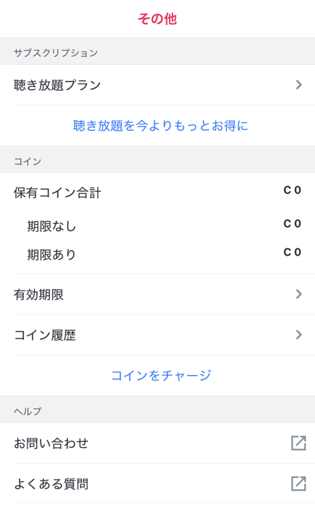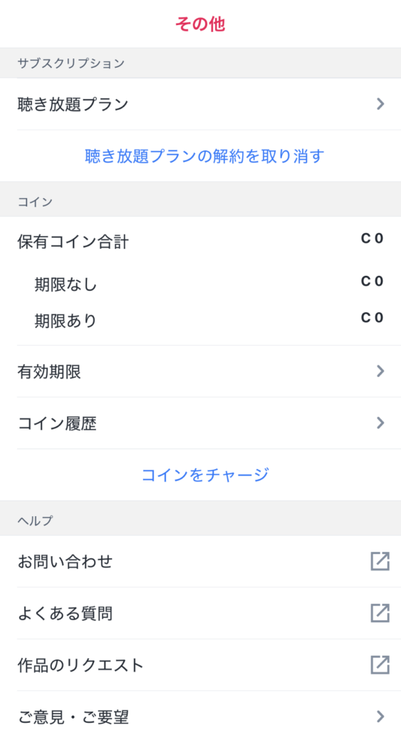 audiobook.jpの聴き放題は、アプリの「その他」から解約できます。