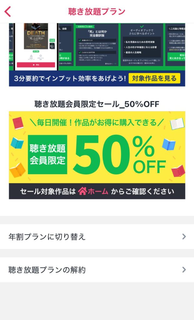 今回の手順は聴き放題プランの解約です。